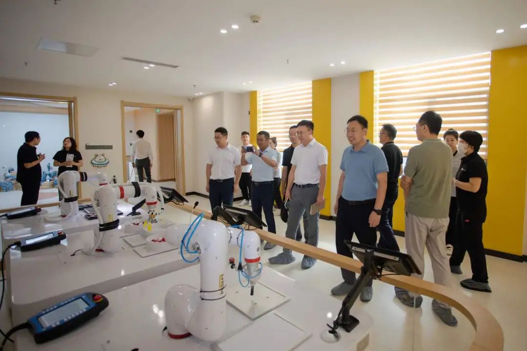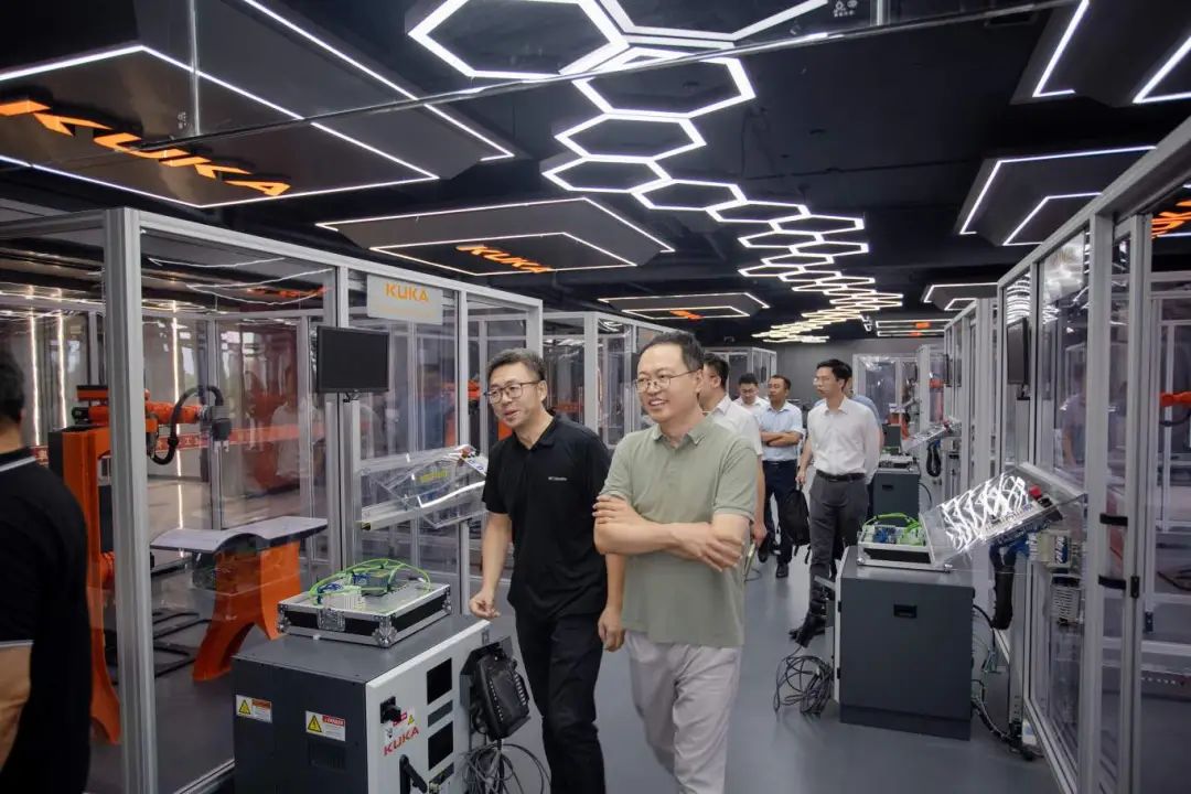 交流期间,李明一行参观了我校i5智能制造实践教学中心、浪潮工业互联网学院联合创新中心、库卡学院和学前教育学院实践教学中心。