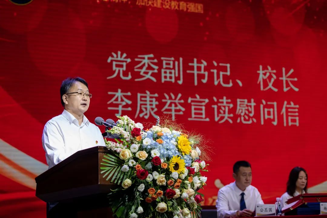李康举宣读省委、省政府《致全省广大教师和教育工作者的慰问信》。