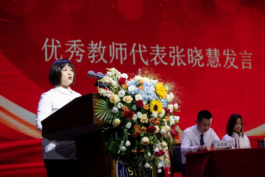胡晓梅代表学校向受到表彰的先进集体和个人表示热烈祝贺,向在学校各个岗位上默默奉献、辛勤耕耘,为学校发展付出心血和汗水的全体教职员工致以崇高的敬意和衷心感谢。她希望,广大教职工对标党的二十届三中全会作出的重大战略部署,认真学习贯彻全国教育大会精神,以受表彰的先进集体和先进个人为榜样,更加紧密地团结在以习近平同志为核心的党中央周围,深刻领悟“两个确立”的决定性意义,增强“四个意识”,坚定“四个自信”,做到“两个维护”,弘扬践行教育家精神,努力培养德智体美劳全面发展的社会主义建设者和接班人,为加快教育现代化、建设教育强国、实现中华民族伟大复兴作出新的更大贡献。