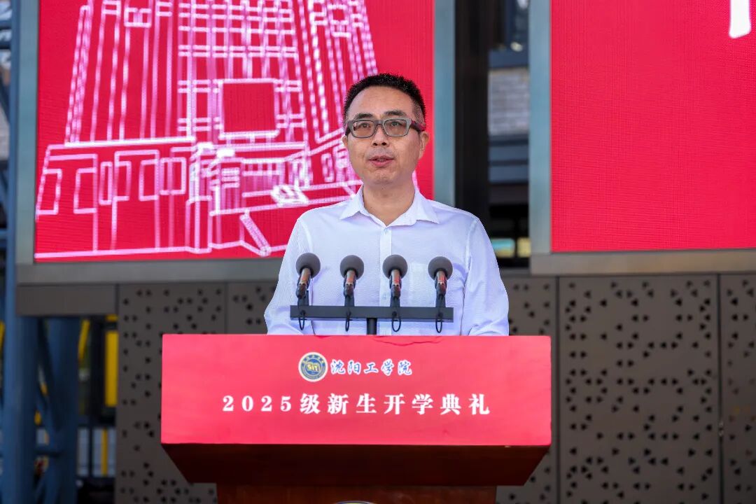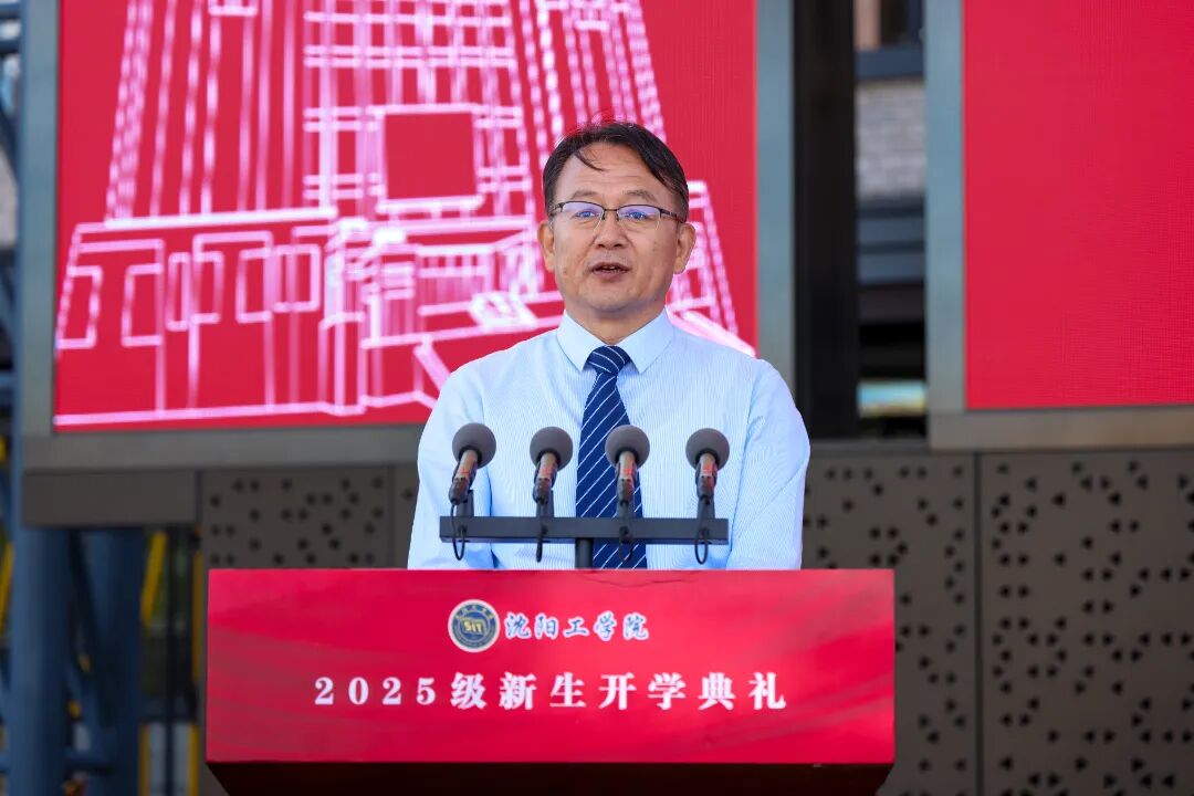 校长李康举的致辞,满含期许与嘱托。他代表学校向2025级新生致以热烈欢迎,细数学校在人才培养、科研创新领域的坚实成果——从AI实验室的升级迭代,到智能体教学系统的全面应用,再到与19家龙头企业深度合作共建现代产业学院,每一项成果都彰显着沈工“数字化赋能教育”的坚定初心。“学校的现代产业学院是你们的实践沃土,校园智能体平台是你们学习进步的强大工具,教师是你们的助力者和引路人。珍惜并利用好沈工给大家提供的资源,大胆规划并积极探索自己的大学旅程,我们将为同学们的规划和成长保驾护航”,一字一句,既是对新生的殷切期望,更是为他们未来四年“与智能同行”的成长之路,锚定了方向。