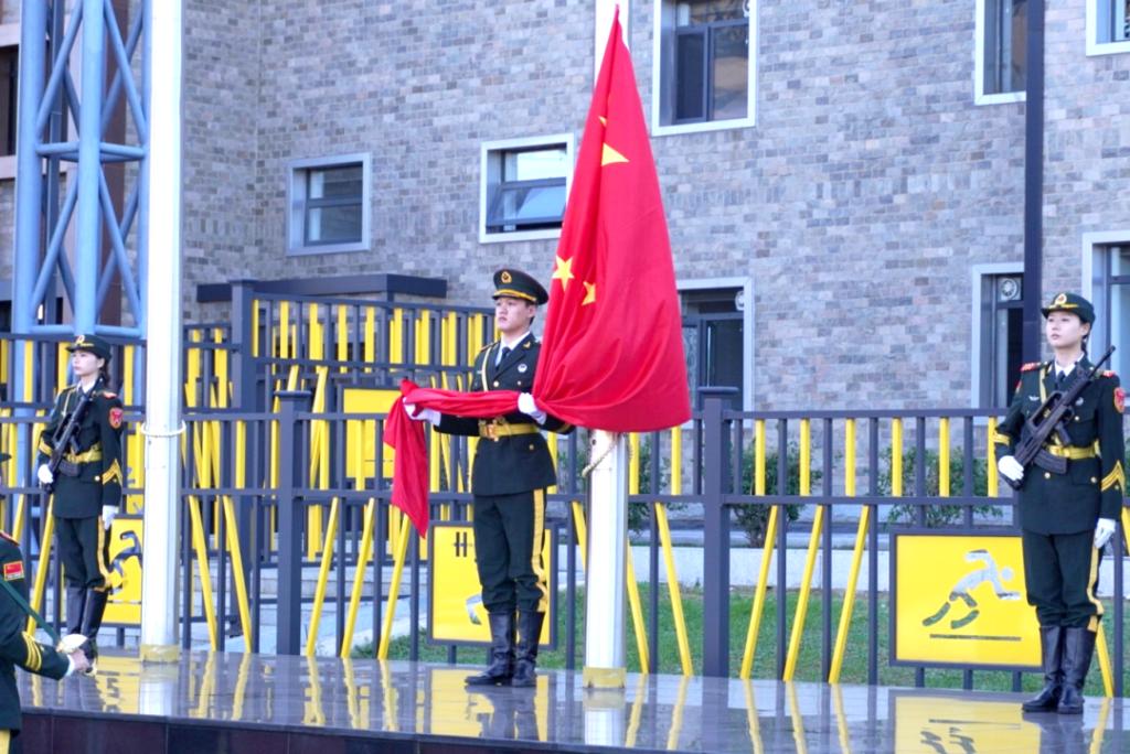 随着五星红旗冉冉升起,典礼在雄壮的国歌声中拉开序幕。