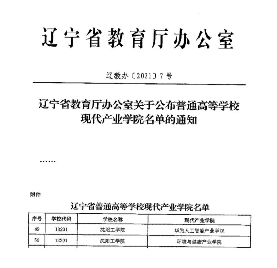 近日,辽宁省教育厅办公室公布了省级普通高等学校现代产业学院名单,我校由信息与控制学院牵头申报的华为人工智能产业学院、由生命工程学院牵头申报的环境与健康产业学院分别被认定为辽宁省普通高等学校现代产业学院。