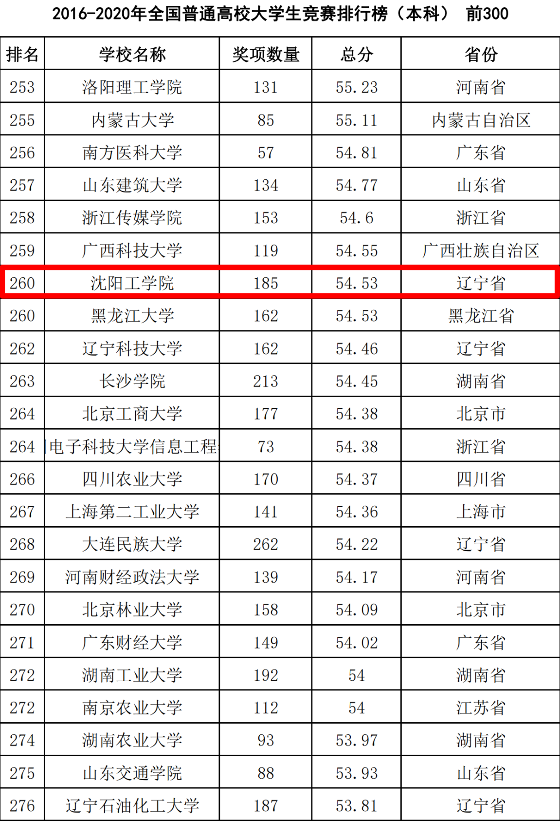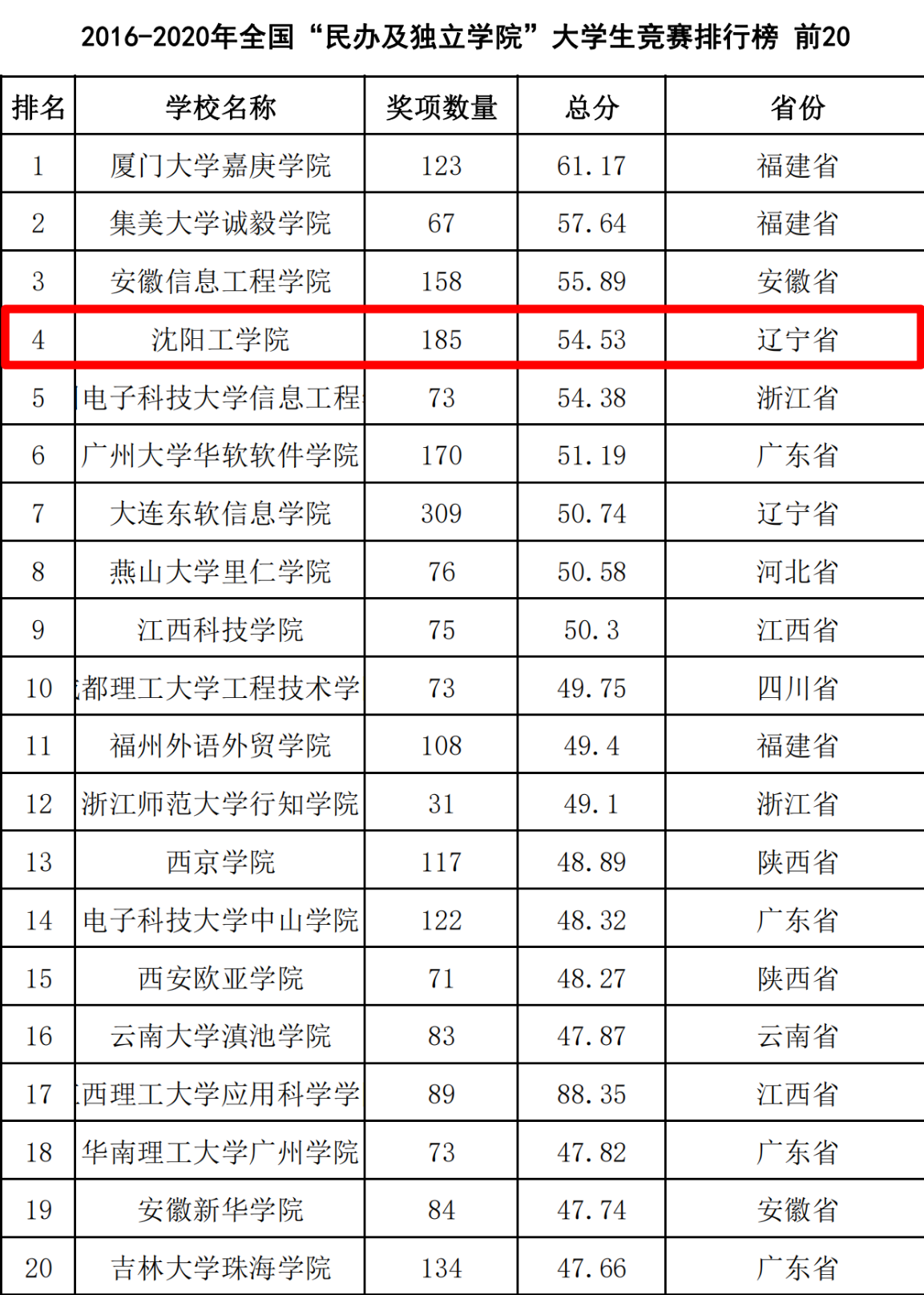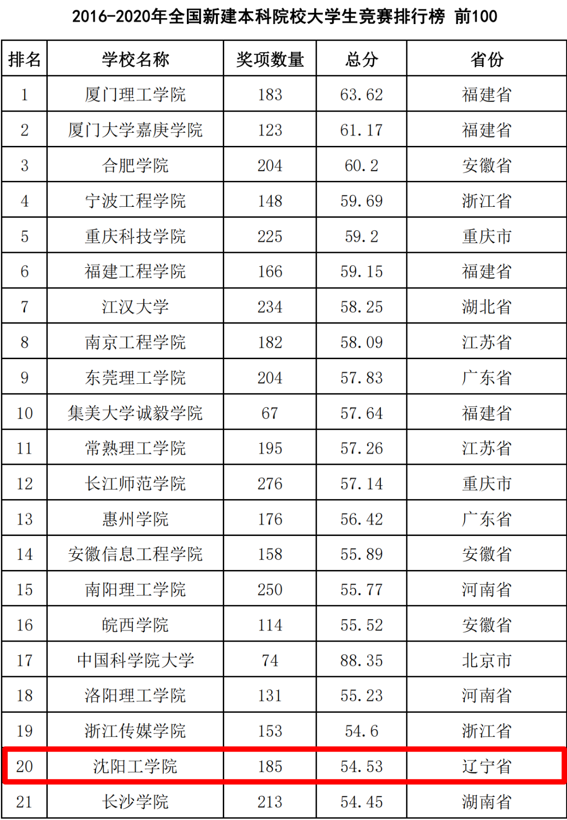 3月22日,中国高等教育学会高校竞赛评估与管理体系研究工作组发布了2020年全国普通高校学科竞赛排行榜。我校在普通高校学科竞赛排行榜本科组中全国排名从2020年公布(2015-2019年)的273位晋升到2021年的260位(2016-2020年)。在2016-2020年全国新建本科院校大学生竞赛排行榜中位列全国第20位。在全国“民办及独立学院大学生竞赛排行榜中由2014-2018年的第7位晋升到2015-2019年的第6位,再晋升到2016-2020年的全国第4(辽宁省第1)位。