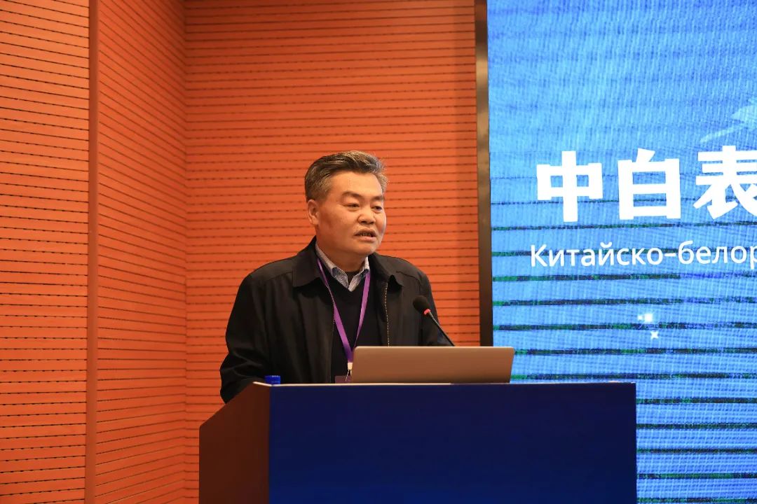 舍列格·瓦列里·康斯坦丁诺维奇院士发表主旨演讲。康斯坦丁诺维奇院士30多年来,一直致力于液体和气体的多孔粉末材料的理论和实践问题研究,奠定了按过滤产品面积和厚度调节多空粉末材料孔径分布的理论基础,使白俄罗斯和俄罗斯企业能够开发和实施用于液体和气体过滤的全新材料及其生产工艺。他详细介绍了研究成果以及该成果的实际应用。