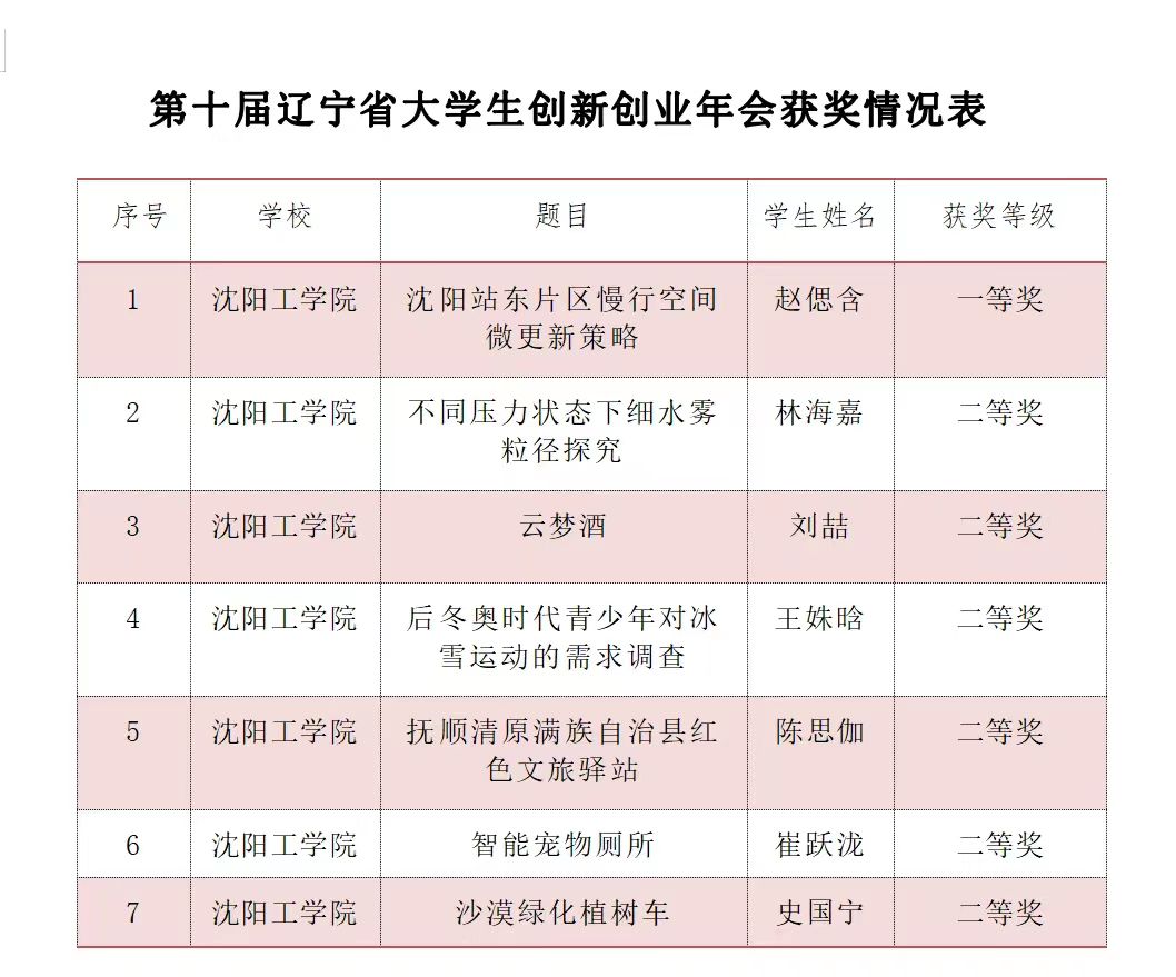 7月7日至9日,第十届“辽宁省大学生创新创业年会”在沈阳理工大学落下帷幕。经过项目答辩、专家评审等环节,我校获得创新创业年会一等奖1项、二等奖6项,优秀学术论文一等奖1项,优秀指导教师1项。