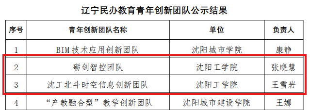 青年创新团队和拔尖人才建设是学校落实“人才强校”战略、推动教育教学高质量发展的重要举措。学校始终坚持“引育并举”,通过加大科研支持、搭建跨学科平台、强化校企协同等举措,激发青年教师创新活力,营造人尽其才的创新环境。未来,学校将以此次评选为契机,充分发挥青年创新团队与拔尖人才的示范引领作用,持续深化教育教学改革,加强科研与高水平师资队伍建设,为辽宁省民办教育高质量发展贡献“沈工力量”。