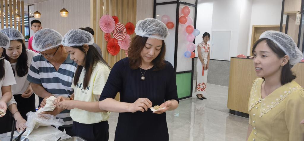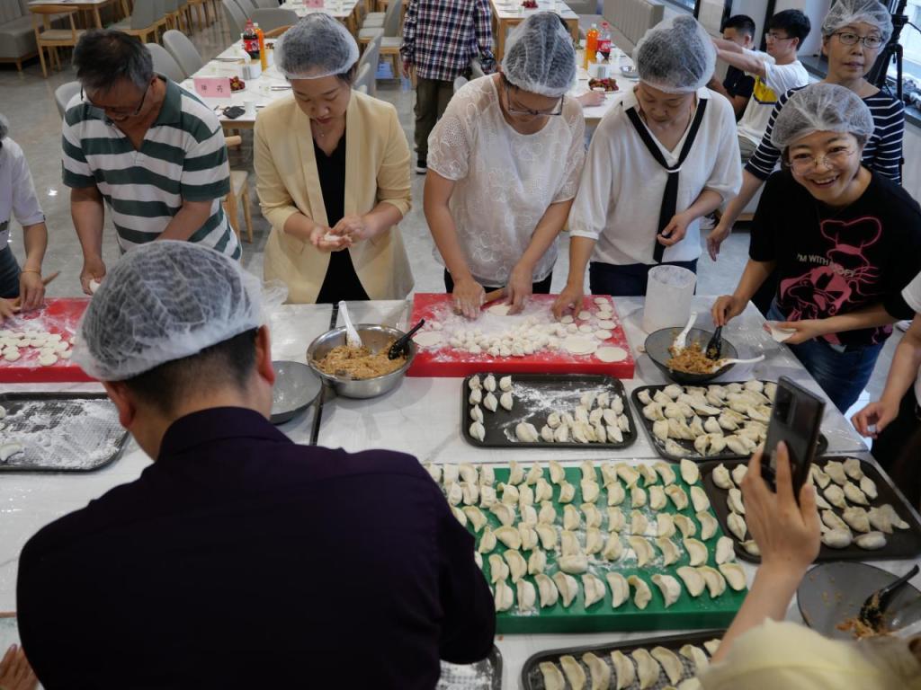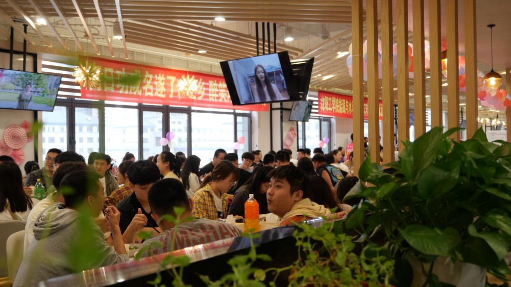熟练地擀起面皮,撮起馅,轻轻一捏,一个饺子就成形了。饺子个个挺立饱满,寄托着师生间的祝福。餐厅屏幕滚动播放着同学们四年间的学习生活照片。老师们一边包饺子一边向毕业生嘱托未来。测绘工程专业教师李泽鸣说:“这是我第一批正式讲课带的学生,四年的时间,我们陪伴彼此共同成长,明天大家就正式毕业了,我内心十分不舍,但天下没有不散的筵席,希望他们都能拥有辉煌灿烂的人生。”