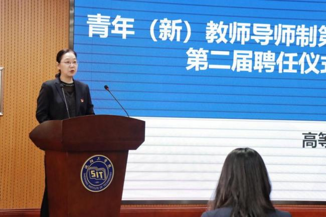 仪式上,邵玉对第一届青年教师导师制工作取得的成绩给予充分肯定,她表示,跨学院导师制施行以来,对学校专业资源共享、实践经验交流与教学技能互通发挥了重要的促进作用,进一步提升了青年教师的课堂教学、实践教学、科学研究等方面能力。她希望全体导师要切实提高政治站位,突出师德建设,加强部门协同,更新教学理念,夯实教学基本功训练,助力青年教师踏稳教育教学职业生涯第一步。