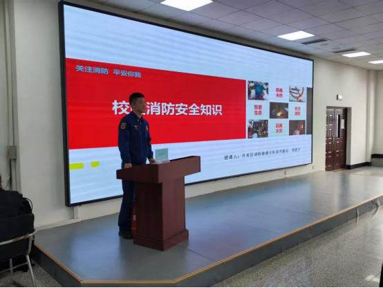 会议伊始消防员胡晨升通过生动的案例和直观的演示,为师生们详细讲解了火灾的预防、火灾发生时的应急处置方法以及如何正确使用灭火器等消防器材。